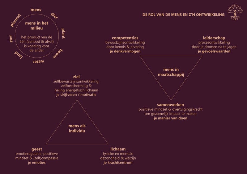Ieder mens komt voort uit het milieu en is van betekenis binnen dit ecosysteem. We helpen de natuur een handje wat geen ander wezen kan in het dieren- of plantrijk.